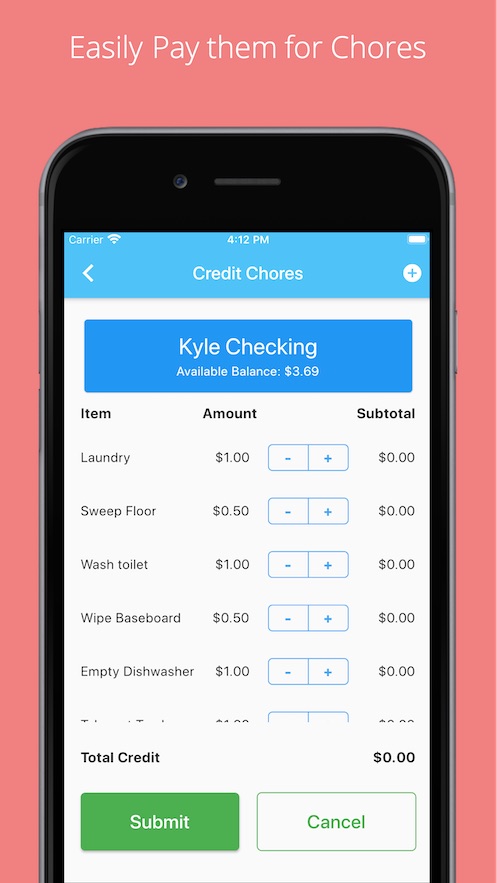 However, we choose to pay our kids for larger chore items like mowing the lawn and putting away clean laundry for their parents. It is part of our overall decision to teach them some financial principles of earning and saving while completing their chores. We pay them and track their savings using the KidsHomeBank app that we developed.